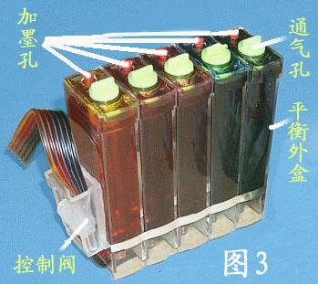 可以从电脑城卖连供处购买外置“平衡墨盒”和“硅胶排管”及“管线支架”和管线连接墨盒用的“小弯头”,有的商家有外置平衡墨盒和硅胶排管已经粘接好的(50元左右),当地买不到也可以查找连供厂商邮购。现在有的连供厂商也是推荐使用这种用原装墨盒改连供的方法。