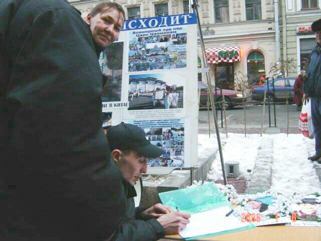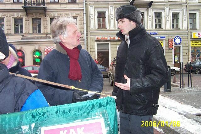 俄罗斯法轮功学员彼得堡街头讲真相(图)