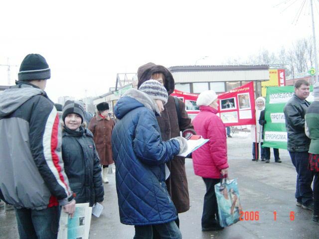 1月6日,参加交流会的各地学员,在彼得堡市中心的两个地铁站附近举行集会,以各种真相展板,真人模拟酷刑展等形式,向过往行人揭露中共政权六年来对法轮功学员的残酷迫害。学员们主动向世人讲真相,派发资料。很多人明白了真相后主动签名支持反迫害。