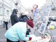 一个男士来到这里,学员主动上前讲真相,开始他很不以为然,说:“你们搞这些和我们有什么关系?”学员问他:“如果在俄罗斯有人因为信仰东正教被抓坐牢,你赞成吗?”那人回答:“我反对,信仰应该自由。”学员问:“在中国,人们就因为信仰‘真、善、忍’而被残酷迫害,你赞成吗?”他回答:“不赞成。”并点头表示明白了。