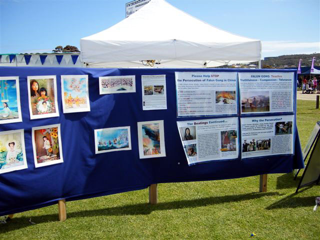 许多人听到了这一采访,他们来到我们的展览以了解更多正在澳大利亚和中国发生的有关法轮功的事情,同时表达他们的支持。