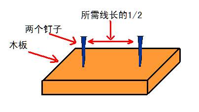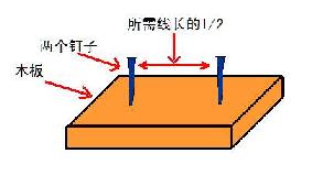 1、在木板上钉上2个钉子,2个钉子之间的距离等于所需挂绳长的一半。钉子只需扎進木板,使露出的部份尽量长,不至用手拔出即可。