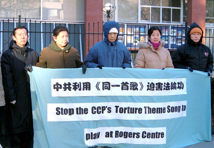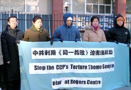 ![]() 法轮功学员多伦多中领馆前抗议中共利用《同一首歌》迫害法轮功 |