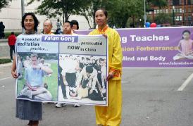 然而在中国,法轮功学员没有信仰自由的权利,没有自由炼功的权利,更加不可能有游行的机会。中共邪党对信仰“真、善、忍”的法轮功学员的残酷迫害已有六年多了,铺天盖地的谎言迷惑着中国人。中共用洗脑、酷刑等方式对法轮功学员进行身心的摧残,有些学员甚至失去了生命。海外的法轮功学员始终大善大忍,理性、和平的利用各种形式向人们讲真相,揭穿谎言,揭露迫害,将真相展示给世人。