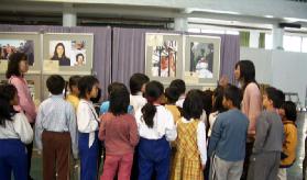 一群群小朋友来到会场,个个伸长脖子聚精会神的看着、听着,不时向在场解说的阿姨们提出疑问,“为什么这样?”“为什么那样?”“怎么可能?”“真的假的?”“好残忍喔!”“怎么下得了毒手?”“警察不是在抓坏人的吗?保护老百姓的吗?”“这些修炼人真是勇敢耶!”有些小朋友则说:“真、善、忍很好啊,他们又没做坏事却要承受这种冤屈,受这种待遇,真是没道理啊!还好我们生在台湾!”有一中年级的男生气愤的说:“这些酷刑应该恶警留着自己用才对!”