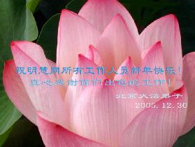 明慧网的同修们:你们辛苦了!全体大陆的大法弟子谢谢你们啦,祝你们新年快乐!共同精進,一起回家!