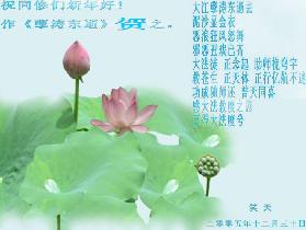 值此新年到来之际,我们全体诸城大法弟子向你们及你们的亲人问好!并祝同修全家新年快乐!让我们海内外的大法弟子形成一个圆容不破的整体,在新的一年里,以法为师,在救度众生的路上更加精進!