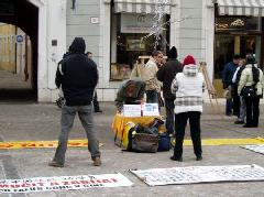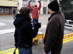 尽管天气寒冷,人们仍然在呼吁制止迫害的请愿信上签名表达他们的支持,在中午以前已经征集到非常多的签名。