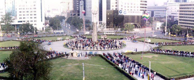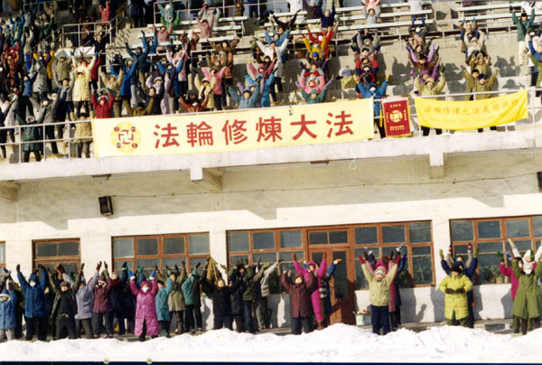 1999年7月20日前辽宁鞍山市大法弟子集体洪法图片