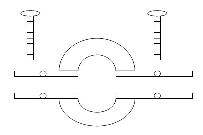 这种“固定床”是在一个长2 M的木板两端各镶有一块钢板,上面有一排孔,用以固定手和脚扣子的(见图3),“固定床”除有“抻”的功能外,主要是固定作用,人被固定时身体与床不分离,不腾空,四肢松紧程度要比“抻”时松。固定时除大便下来,小便和睡觉都不下来,有的被固定几个月时间。