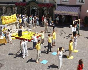 位于萨尔茨堡著名的米拉贝尔花园和国际会议中心之间的小公园里,有一个特殊的修炼团体。他们一到周末,或天气晴朗的日子,都会在这里炼功。祥和的炼功音乐、优美的功法,吸引着来自世界四面八方的游客驻足观看,拿走各种语言的传单。当然,也包括来自中国的大量旅游团体。这些人在这里炼功,已经将近6 年多了。他们就是法轮大法修炼者。