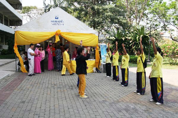 【明慧网2006年1月27日】2006年1月25日,泰国法轮功学员参加了兰实大学一年一度的“开门”活动,学员们在会场介绍五套功法,讲述法轮大法的美好,展出了真善忍画展,并表演了仙女舞,吸引了众多视线,受到人们欢迎。