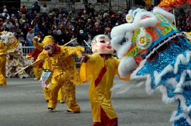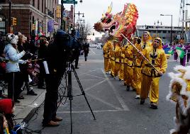 有百年历史的费城新年化装游行已成为大费城人庆祝新年的独一无二的方式--从早上9点到下午5点,1万5千多名游行者或戴着各种化装面具载歌载舞、或开着各种不同主题的花车呈现在费城市中心百老汇大街上。