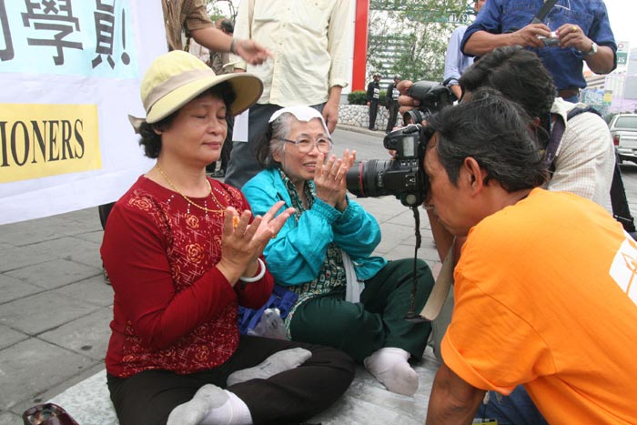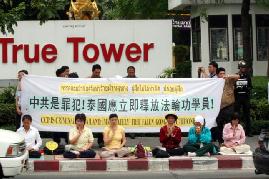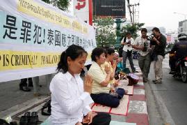![]() 泰国法轮功学员在中共使馆前抗议 | ![]() 记者摄影 |