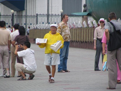 我在市场上还遇到这样一个中国人。当他看见我那面写有“法轮大法好”的小旗子时,几乎要哭出来,用断断续续的俄语冲我喊“走开!我不想看见你!别上这来!”然后他全身发抖,就象一个受到惊吓的孩子。我觉的这个人真可怜,共产党的谎言竟然将人误导到这种地步!晚上我和同修们交流了此事,我们认为,应该再去试试。第二天我又去了市场,送给那个人揭露中共邪恶本质的《九评共产党》。他对我表示感谢。同修们真诚的愿望打消了他的恐惧。