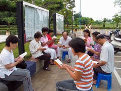 目前这个炼功点有六对夫妻同修,其中张先生原是执业医师,夫妻得法后深深体悟到法轮大法的美好,特别将诊所开放给同修作为学法交流的场所。另一对林姓同修生意做的很好,夫妻平时生活俭朴、待人诚恳,辛苦积蓄却在朋友共同投资下被骗,一时心情陷入低潮,在交流中经同修不断的安慰鼓励并以“不失者不得”的法理对照,目前已经定下心来学法炼功。