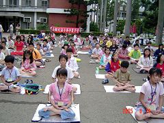 每天清晨天未亮时,公园、学校、运动场上就已听见祥和的炼功音乐,黄色的“法轮大法好”横幅系在两树间。