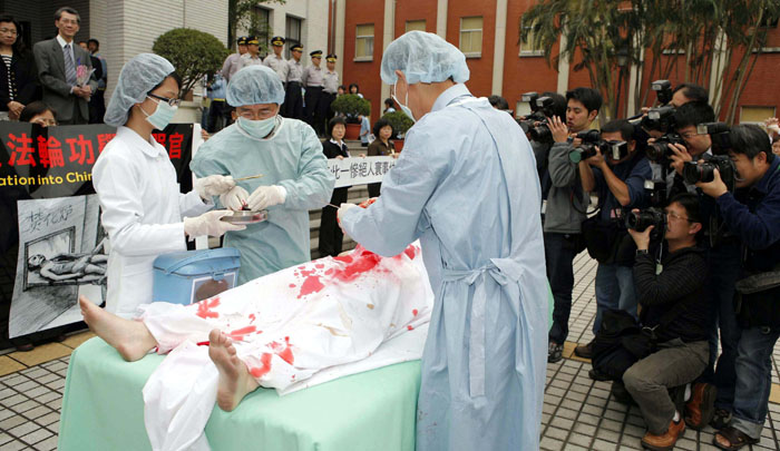 ![]() 台湾立法院外的行动剧,谴责中共活摘器官暴行 |