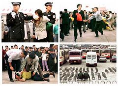 ![]() 大陆警察毒打和强行逮捕请愿的法轮功学员 | ![]() 四千台湾法轮功学员在中正纪念堂前排组法轮图形 |