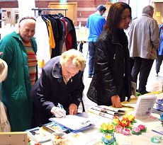 【明慧网二零零六年十月十七日】瑞典的秋天碧空如洗,非常清爽。二零零六年十月十四、十五日,法轮功学员应邀参加了在首都斯德哥尔摩的一个社区哈龙达(Hallunda)举办的名为“感觉好的一天”健康博览会。法轮功学员的展位上有“法轮大法”横幅、书、光碟、录像带、精美的纸折莲花和洪法书签,信息丰富的瑞典文传单及“真善忍美展”画作,还备有中文的真相资料和《九评共产党》报纸。