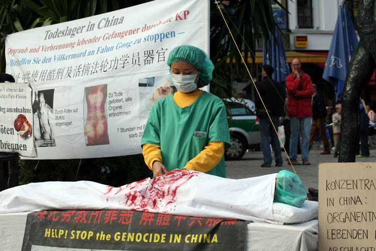 模拟活摘器官的手术台,揭露中共罪恶行径