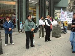 除了奥地利人和德国人之外,还有来自匈牙利、意大利、日本、法国、英国和韩国的游客也来了解情况。一个来自中国的大旅行团听学员讲述中共的暴行,他们还仔细的观看了展板和横幅。学员还与一位专门从事汉学研究的女士進行了深刻的对话。这位女士说:“我的中国!我知道法轮功在中国(被迫害)的情况。今天在那里发生的事情实在太可怕了!”