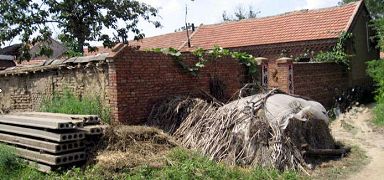 村里的好心人悄悄的将倒塌的南屋的南墙上盖上了几片瓦,长满青藤的凄凉院落在向人们陈述着主人遭受迫害的悲惨的故事。