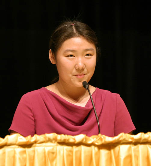 而今年十五岁的尚静茹谈了她在天国乐团的修炼体会。她的作业很多,但都会保障学法的时间。虽然很忙,但成绩很好。在乐团,她选择了一个较难的乐器——短笛。并且学会后还要再教其他学员吹。尽管是第一次吹,而且要快速掌握吹短笛的技巧,这很难做到。但她想:我是大法弟子,这些关是我要过的。终于在两个半天里,她学会了两首曲子,“法轮大法好”和“美丽的美利坚”。她悟到,只要坚持,并能把自己作为大法弟子,就一定会成功。