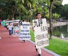 声援退党队伍最后围绕公园游行一周,引起市民们好奇的观看。