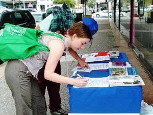 路人签名抗议中共对法轮功的迫害