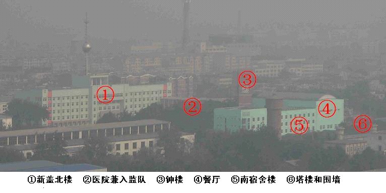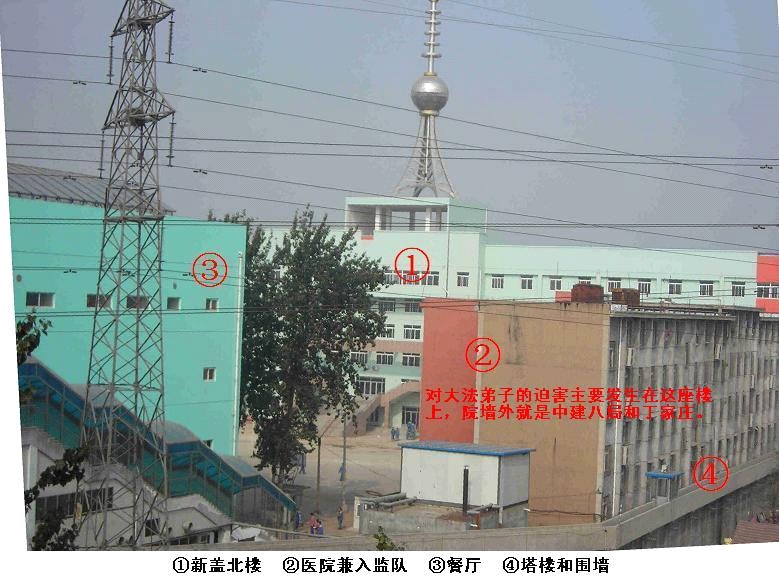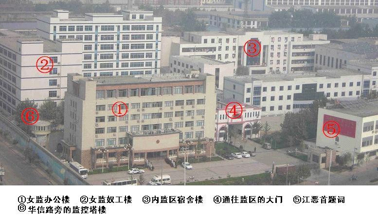 北面绿色的楼于二零零五年底开始盖,今年夏天才投入使用。这座楼的南半部份是狱警办公室,北半部份是关押宿舍。东面是医院楼和餐厅。医院楼的上面两层是入监队(九监区)。被非法判刑的大法学员被关押在入监队,临近期满时也被关押在入监队从新进行洗脑。大法学员如果不被“转化”就一直被关押在入监队强迫洗脑和关小号,如果有绝食抗议迫害的大法学员就直接送楼下的医院继续迫害。北面的绿楼也是关押宿舍。整个内管监区共关押了近三千人。