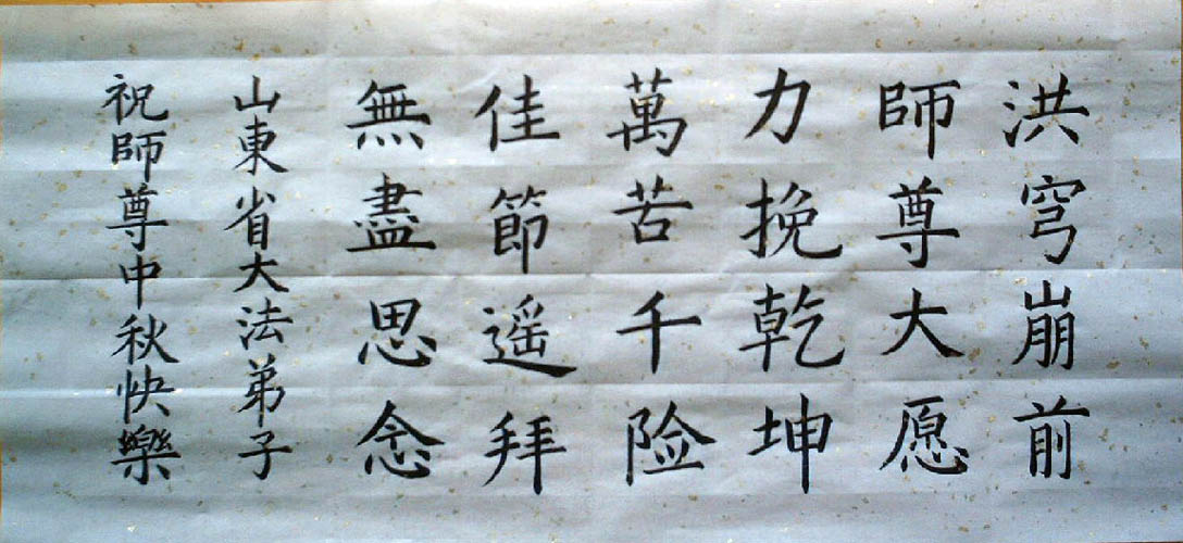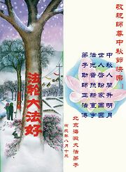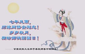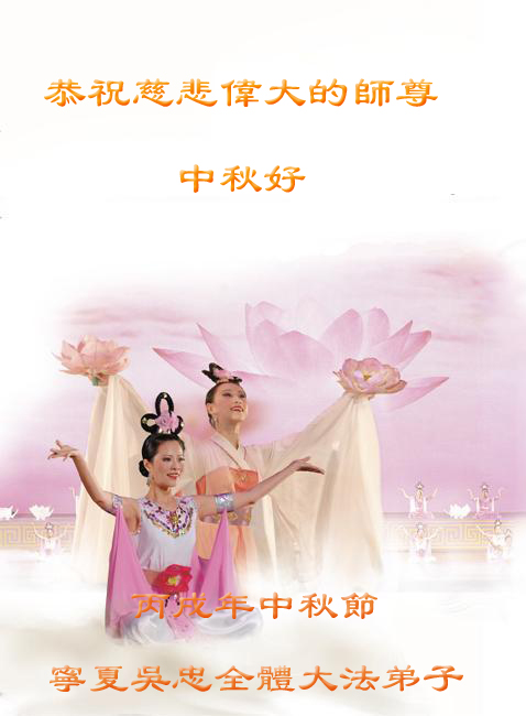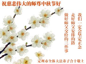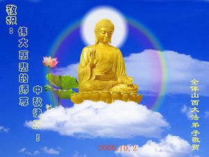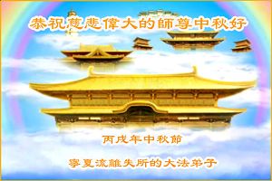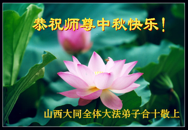 师尊您好:中秋节到了,山西大同全体大法弟子向您问候、您辛苦了!您为众生付出了一切,在此中秋佳节之际,我们全体大法弟子更要勇猛精進,不辜负师父的慈悲苦度,做好大法弟子应该做好的三件事。