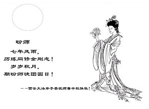 在这中秋月圆之夜、万家团圆之时,我们却不能与师父团聚。此时我们向远在大洋彼岸的师父致以节日的问候:“师父好!您辛苦了!弟子想念您!”