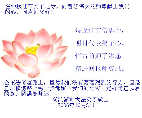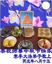 值此中秋佳节之际,我们山东菏泽全体大法弟子向您表示最亲切的问候,并致以最崇高的敬意!祝愿师尊节日快乐!