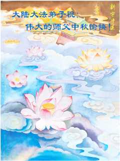 顺祝明慧编辑部的同修及所有海外的同修中秋节快乐!“天涯共此时”,愿我们所有的心能熔为同一颗心,共同精進,共同做好,形成一个坚不可摧的整体,兑现我们的史前大愿!精進、精進、再精進!