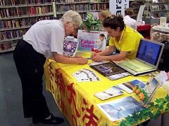 来到展示会的人们都收到了关于法轮功无辜被中共迫害的真相资料。许多人已经知道了这些情况。对于那些不了解真相的人们,学员给他们讲述中共在迫害所使用的残酷手段。学员还与当地国际特赦的代表做了长时间的交谈。