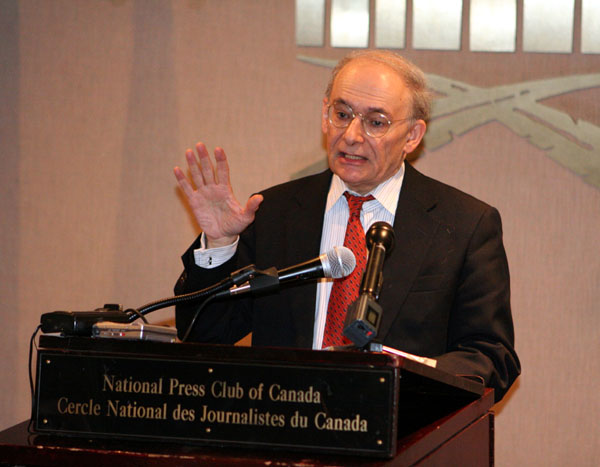 【明慧网二零零六年十月六日】(明慧记者英梓渥太华报道)二零零六年十月四日清晨,前资深国会议员大卫•乔高和国际人权律师大卫•麦塔斯在国家记者俱乐部的早餐会上,向加拿大各大媒体记者、政要和有关专家、学者介绍了关于中共活体摘取法轮功学员器官的调查报告,并回答了记者提出的问题。