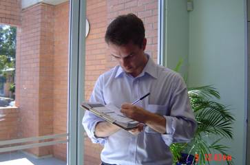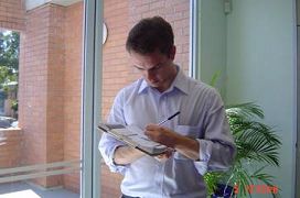 Port Stephens Examiners的记者在采访完后签名支持法轮功