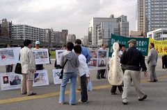 许多人看到横幅和揭露迫害的图片后,主动向学员了解详情。有些人主动提出要签名声援反迫害;有些人拿出钱希望能支援法轮功学员;还有些女士在听学员述说真相时,流下了同情的眼泪。学员们婉言谢绝了钱物,但诚恳的表示希望他们能把这些真相告诉更多善良的人们,共同制止这场惨无人道的迫害。