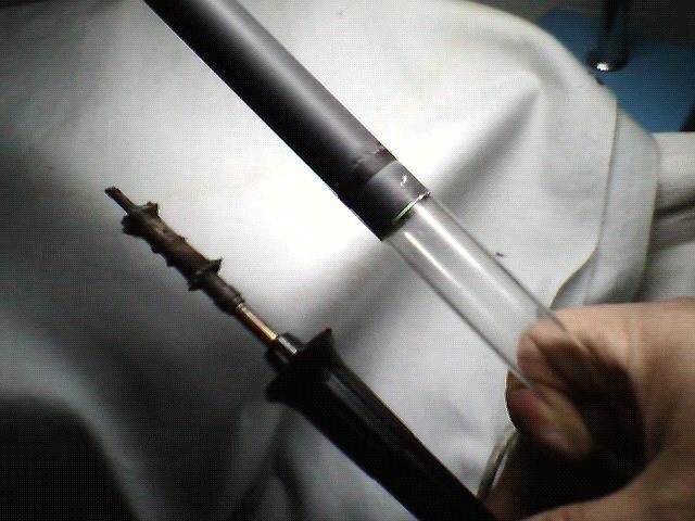 清理方法:把定影膜拆下来,套在试管上,用30瓦电烙铁套上耐高温石棉管,加热积碳后很容易清理掉。注意不要用电烙铁直接刮擦,以防损伤定影膜表面涂层。