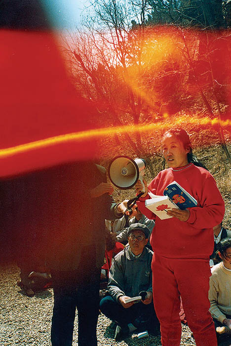 ![]() 这张在法轮功学员炼功时拍到的,在前面有红黄的光团。 |