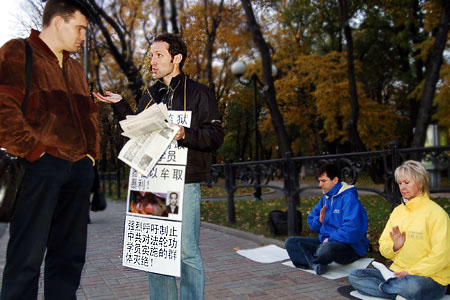 “尽管对法轮功的迫害发生在中国,但这也涉及到生活在乌克兰的我。我经常遇到中使馆在乌克兰对法轮功的造假宣传。我希望我的国家能果断的走出这一步,谴责这非人性的迫害。”一位乌克兰法轮功学员格奥尔•基本勃加切夫说。