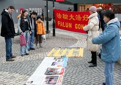 瑞典大法弟子深入社区洪法讲真相(图)