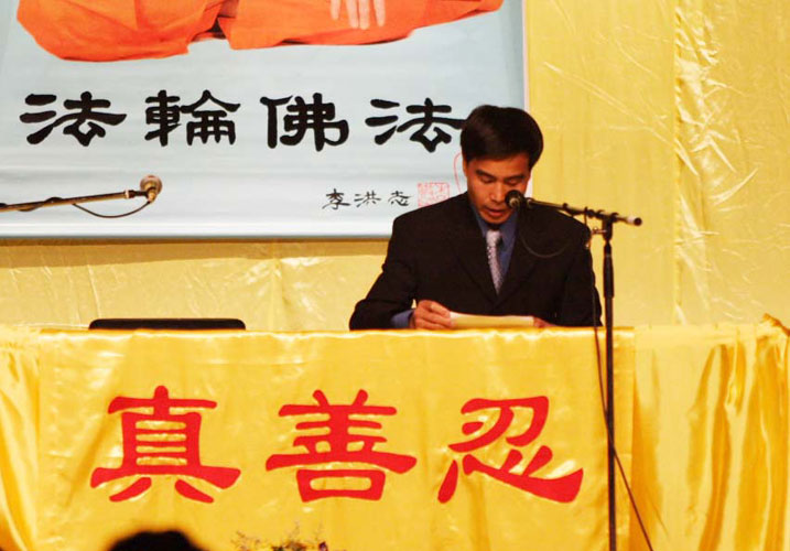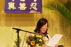 法会于上午九点准时开始。当主持人向大会宣读了师尊的贺电时,全场报与热烈的掌声。此次法会共有十九名学员做了发言。发言者和大家分享了利用各种机会,在不同领域讲真相,救度众生的过程,其实都是一个修炼的过程。