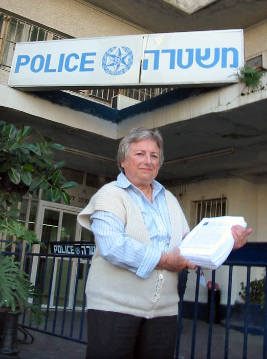 ![]() 欧拉•菲德曼女士代表以色列法轮大法学会在特拉维夫警局报案 |