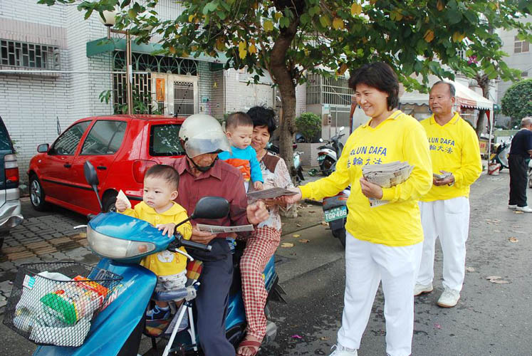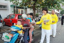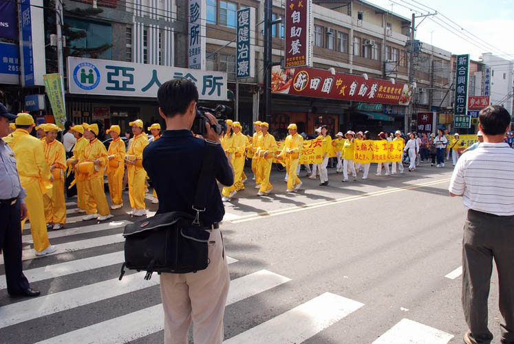 参与游行的“腰鼓队”学员说,过去在台湾各地经常看到法轮功“腰鼓队”的表演,感觉非常震撼,有些学员就提出组织“腰鼓队”的想法。去年底的一个周日,他们邀请了一位台南市 “腰鼓队”的学员来指导,他说:“那一天,在嘉义市博爱国小的校园里,我们敲下了腰鼓的第一槌。”从此,大家约定每周日一起练习,由于大家都很用心,几个月以后就能上场表演了,还远赴云林、台南、高雄等地的游行活动中表演。