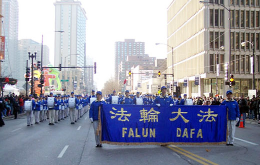 有着七十三年历史的芝加哥感恩节大游行同时也迎来了第四次参加这个美国第二大游行的法轮大法团体,今年,法轮功学员的表演形式是由超过二百余名学员组成的天国乐团,“天国乐团”军乐队以多声部演奏了“法轮大法好”、“美丽的美利坚”等乐曲,在整个游行的沿途获得了无数掌声和欢呼。人们惊讶的发现在军乐队并不少见的游行队伍里出现了以华人为主要面孔的法轮功队伍。这是“天国乐团”继首都华盛顿、纽约、芝加哥中国城演出之后又一次在美国这个著名的游行中扬名。作为唯一一个华人团体,法轮功学员们所带来的不仅仅是自豪,而且是一群修炼人所展示出来的“真善忍”的高尚道德情操。