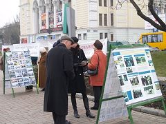 活动期间,很多行人都停下脚步仔细的阅读展板上的内容。他们都很愿意听学员给他们讲真相。当大多数乌克兰人得知震惊全世界的中共活摘法轮功学员器官事件后都签名以呼吁国际调查团赴中国对集中营进行调查。