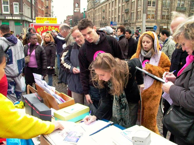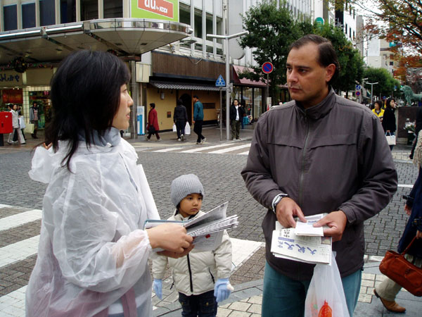 也有些人一听学员讲关于中共对法轮功学员的迫害,就问:“在中国的迫害与我们有什么关系?”学员就细心给他们讲这件事对每个人的重要性。明白真相后的他们不再冷漠,立刻签名表示支持法轮功。