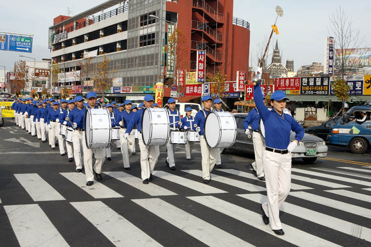 【明慧网二零零六年十一月二十九日】二零零六年十一月二十六日,由韩国法轮大法学会首都地区辅导总站主办的声援退出中国共产党人数超过一千五百万大游行在韩国水源市举行。水源市是一座位于韩国首尔南部,拥有一百万人口的城市,有许多中国人居住在这里。